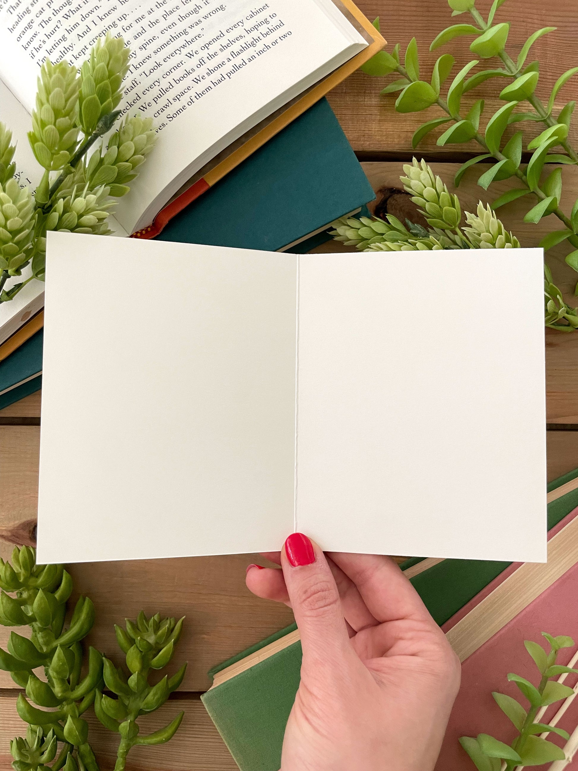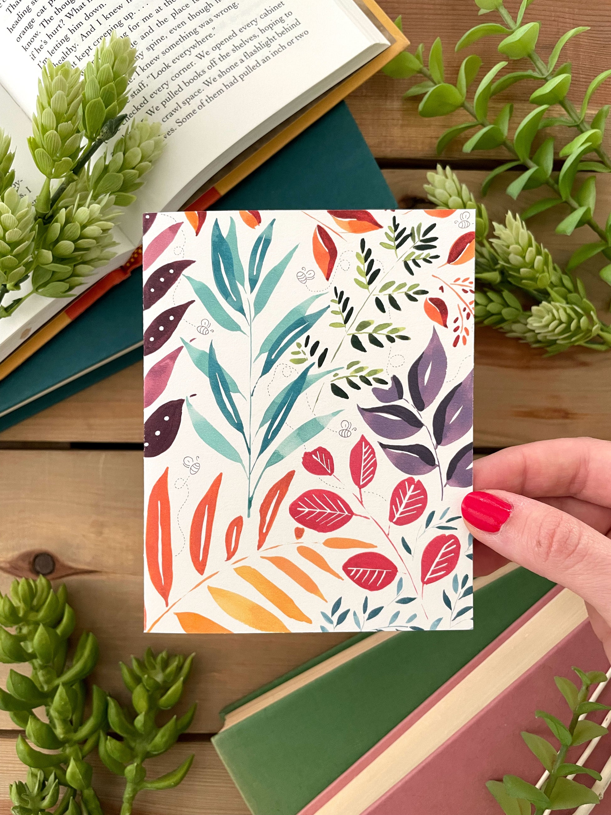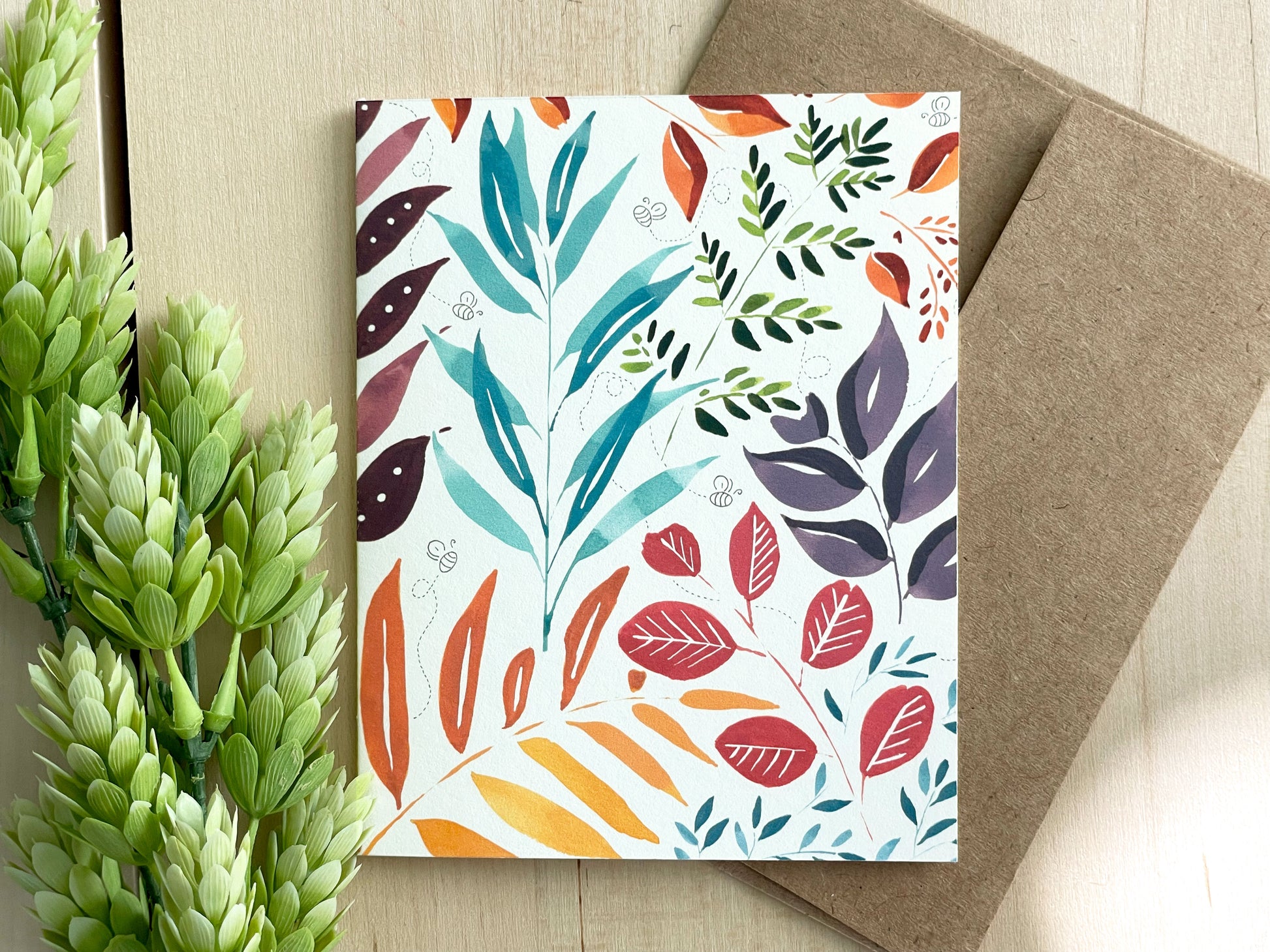 Set of five 4x5 folded cards and five kraft self-sealing envelopes.