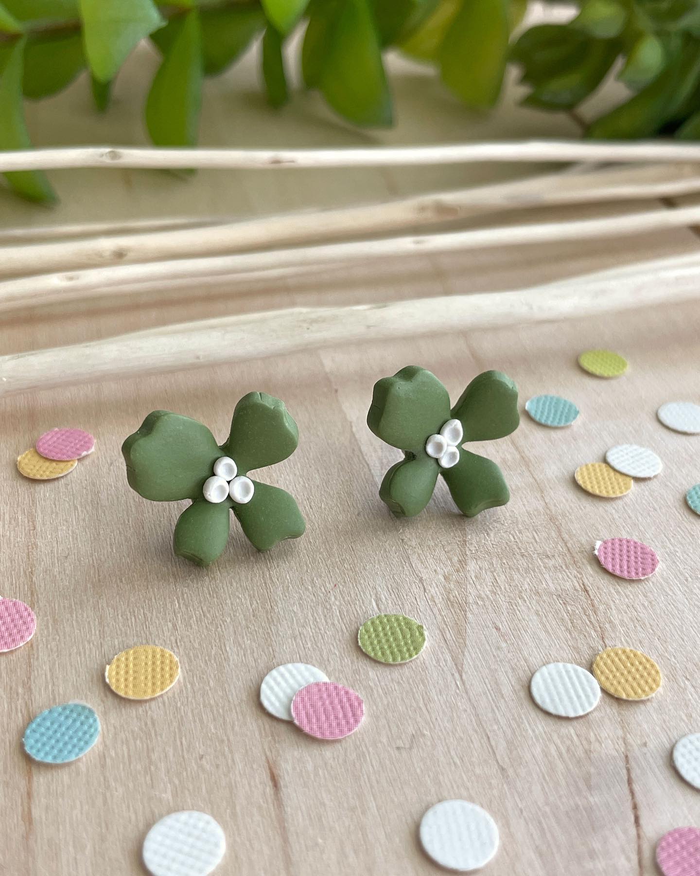 To clean clay earrings, water and mild dish soap can be used (applied with a cloth or q-tip).