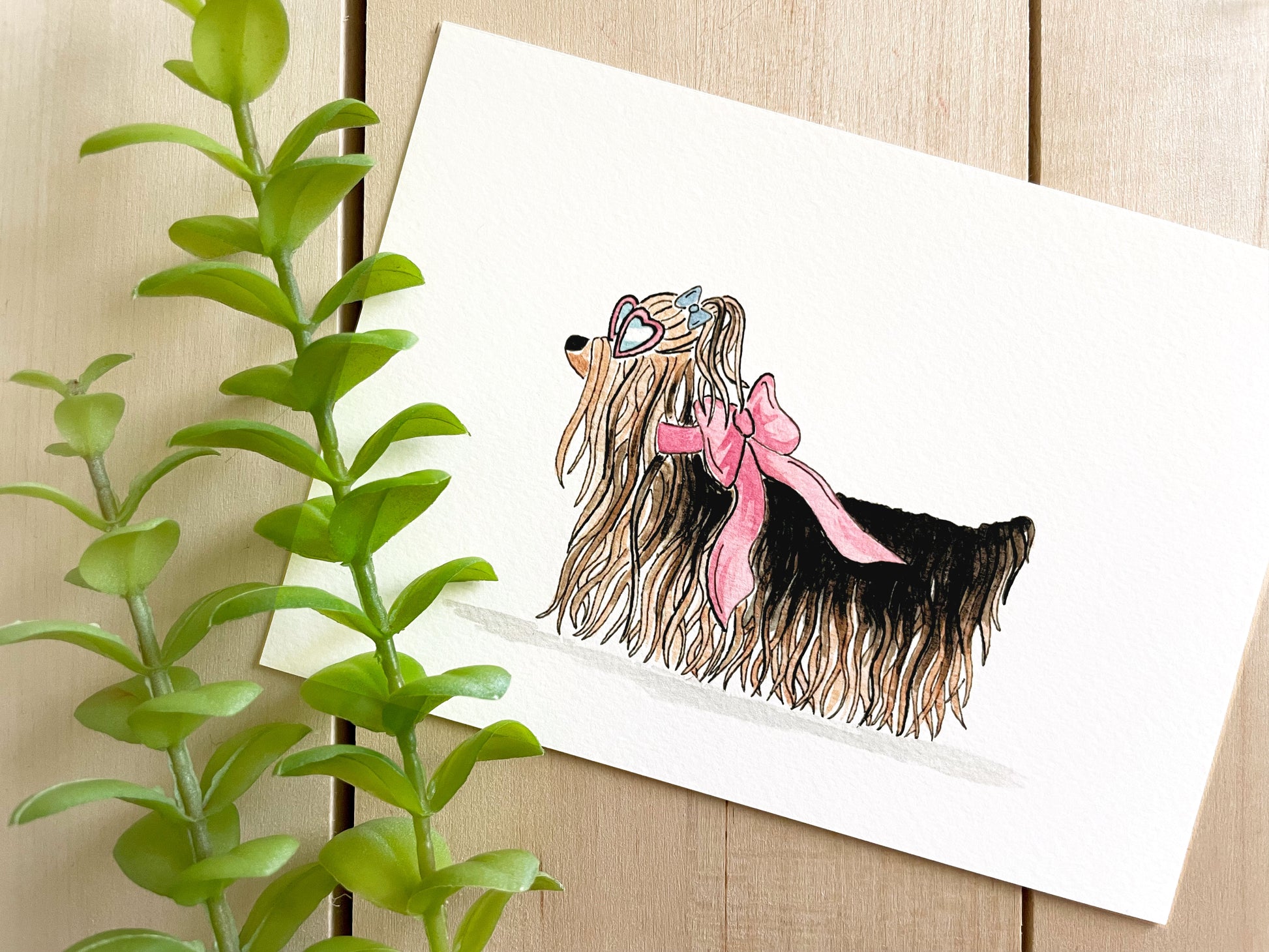 Enjoy a walk with this posh and pampered Yorkshire Terrier art print! Be on the lookout for other dog breeds in this Canine Companion watercolor art print collection!